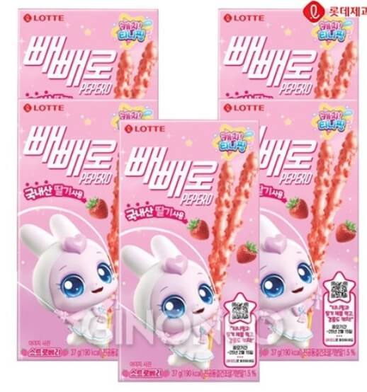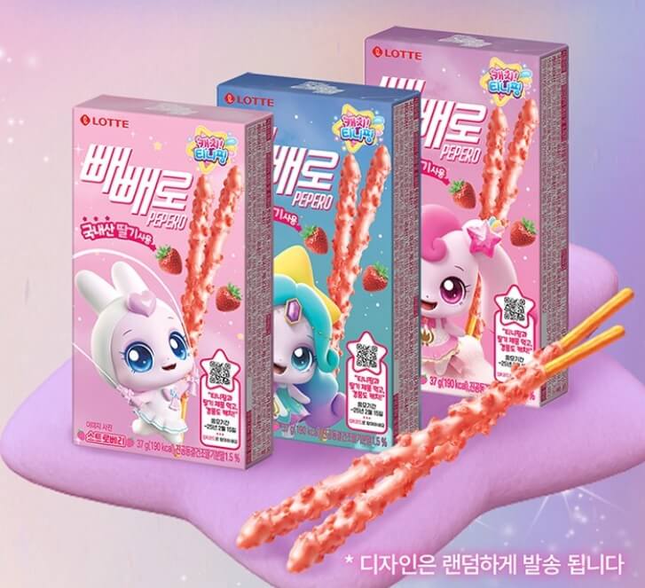 ✨ 특징: 딸기크림 코팅 스틱과자 , 빼빼로에는 새로운 캐릭터가 등장했네요~~ 바로 '깡총핑' !! 깡총핑은 어떤 시련에도 일어나는 긍정의 캐릭터랍니다^^