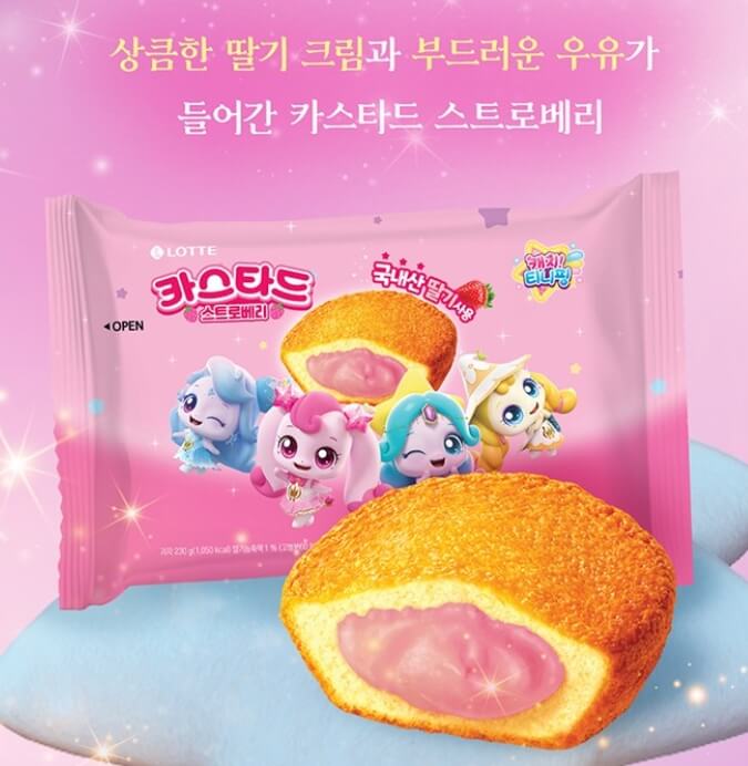 ✨ 특징: 부드러운 카스타드크림 필링, 역시나! 초롱핑, 스타 하츄핑, 빤짝핑, 빛나핑이 등장하고 있어요~^^