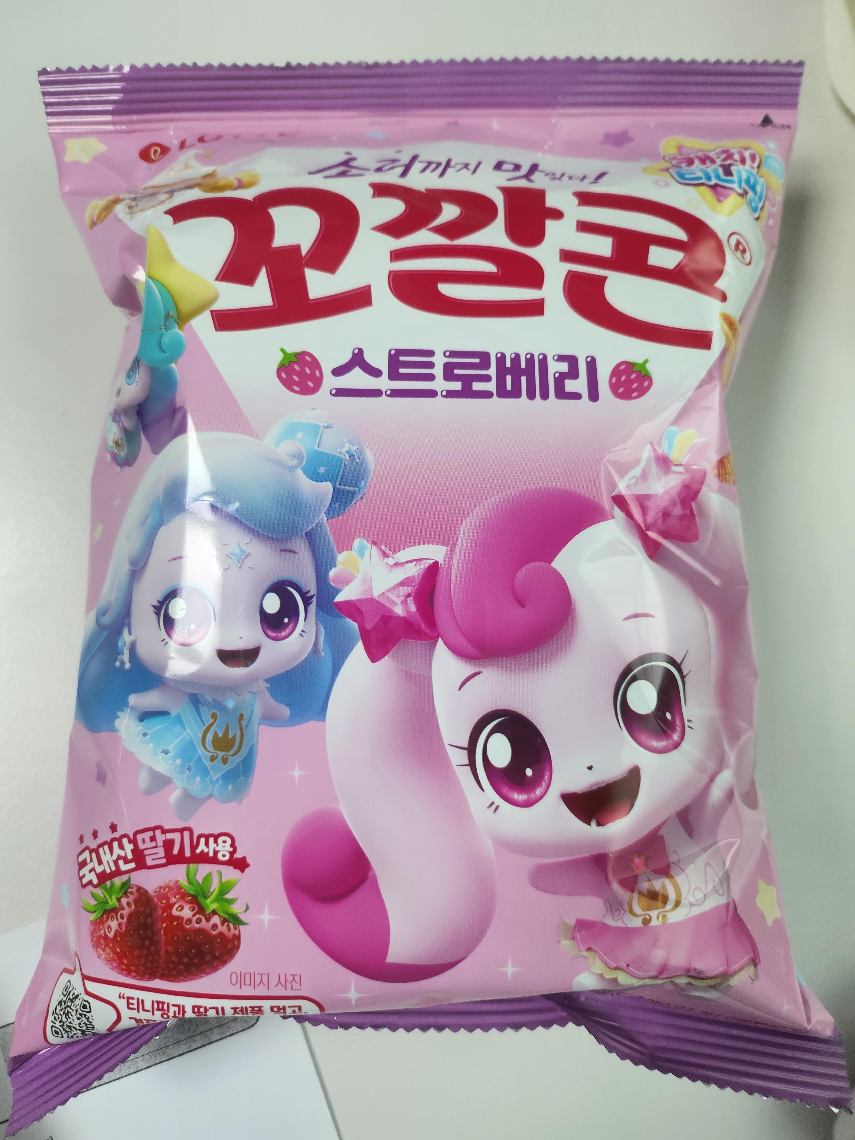 얼마 전, 6살 딸아이의 유치원 소풍 준비를 하면서 시작된 이야기예요. 평소 티니핑을 너무나 좋아하는 우리 딸을 위해 간식을 사러 편의점에 갔다가 우연히 '꼬깔콘 스트로베리'를 발견했어요.